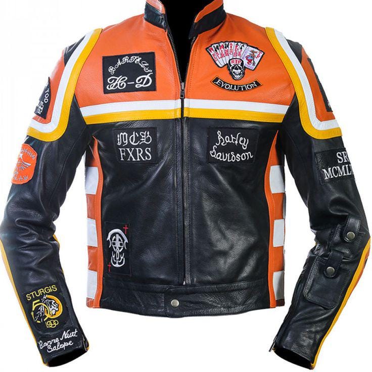 Upgrade your biker look with this vintage racing-inspired motorcycle leather jacket, designed for riders who appreciate classic style, durability, and bold attitude. Featuring a striking black and red color combination with detailed embroidered patches, this jacket delivers an authentic retro Harley racing vibe.