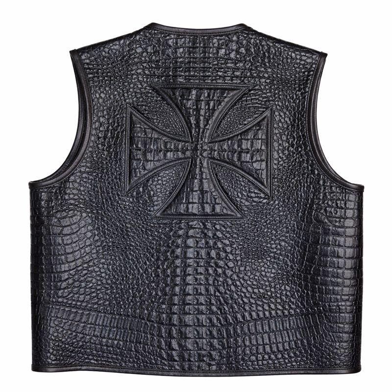 Upgrade your biker look with this premium black crocodile embossed leather motorcycle vest, designed for riders who value style, durability, and functionality. Crafted from high-quality cowhide leather, this vest features a bold croc-pattern finish that delivers a rugged yet luxurious appearance on and off the road.