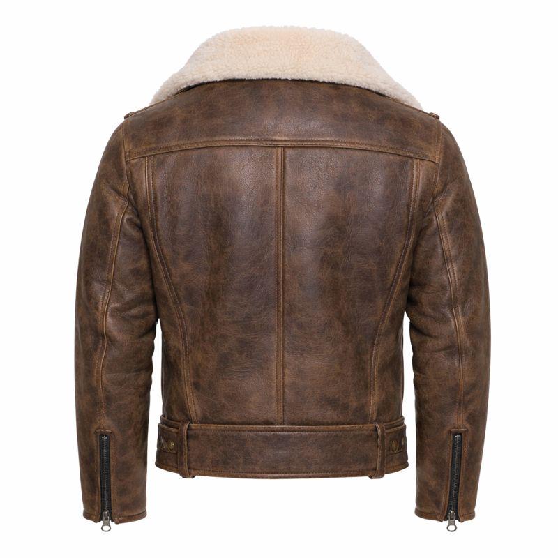 Made from premium-quality leather, the jacket features a soft faux shearling lining throughout the body and collar, providing excellent insulation and a cozy feel. The sturdy front zipper, adjustable waist straps, and zippered pockets add both functionality and an authentic biker edge.