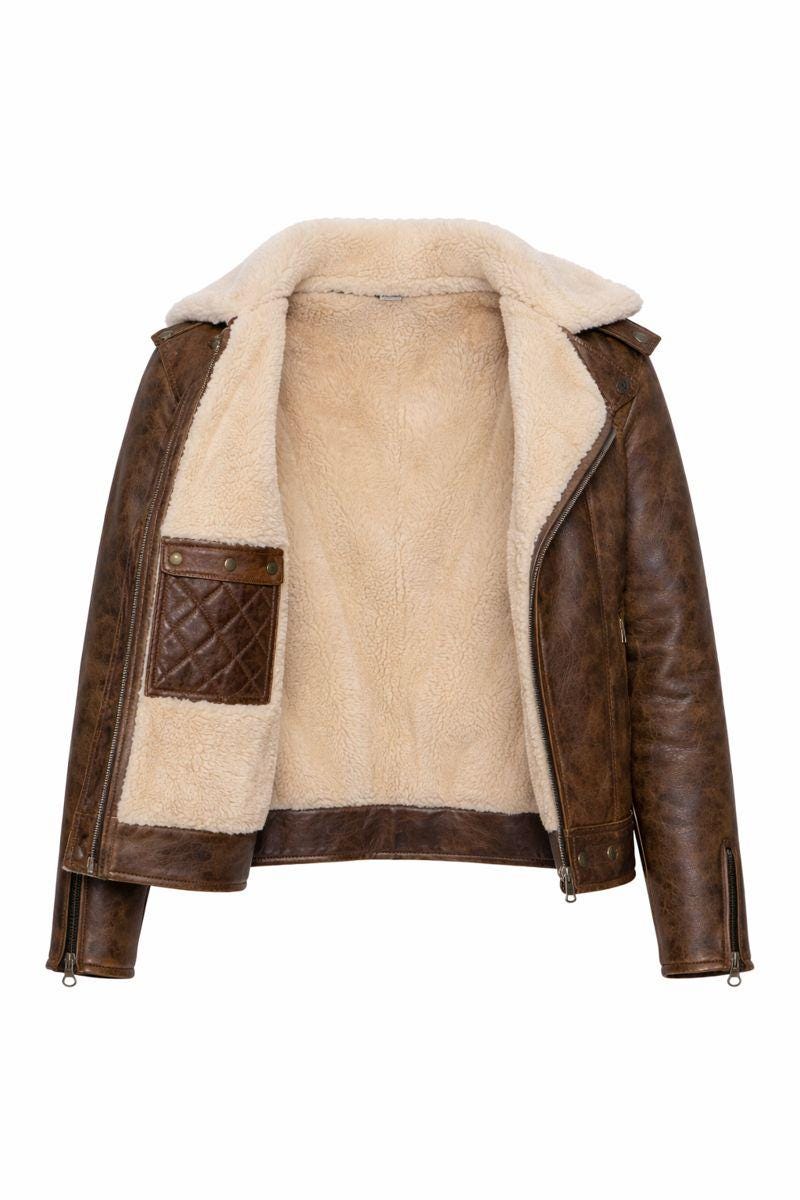 ✔ Premium leather outer with vintage finish ✔ Warm shearling lining for winter comfort ✔ Classic aviator / biker style design ✔ Front zip closure with secure side pockets ✔ Adjustable waist straps for a tailored fit ✔ Ideal for cold weather & everyday wear