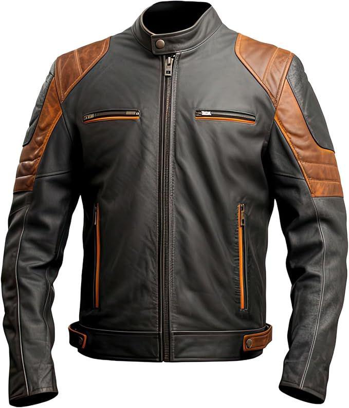Men’s Slim Fit Black & Brown Leather Jacket – Cafe Racer Style