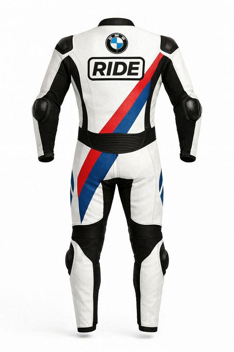 Upgrade your riding experience with this custom BMW-style motorcycle leather racing suit, designed for both track performance and street safety. Crafted from high-quality genuine leather, this suit features CE-approved armor at shoulders, elbows, and knees, ensuring maximum protection without compromising comfort.
