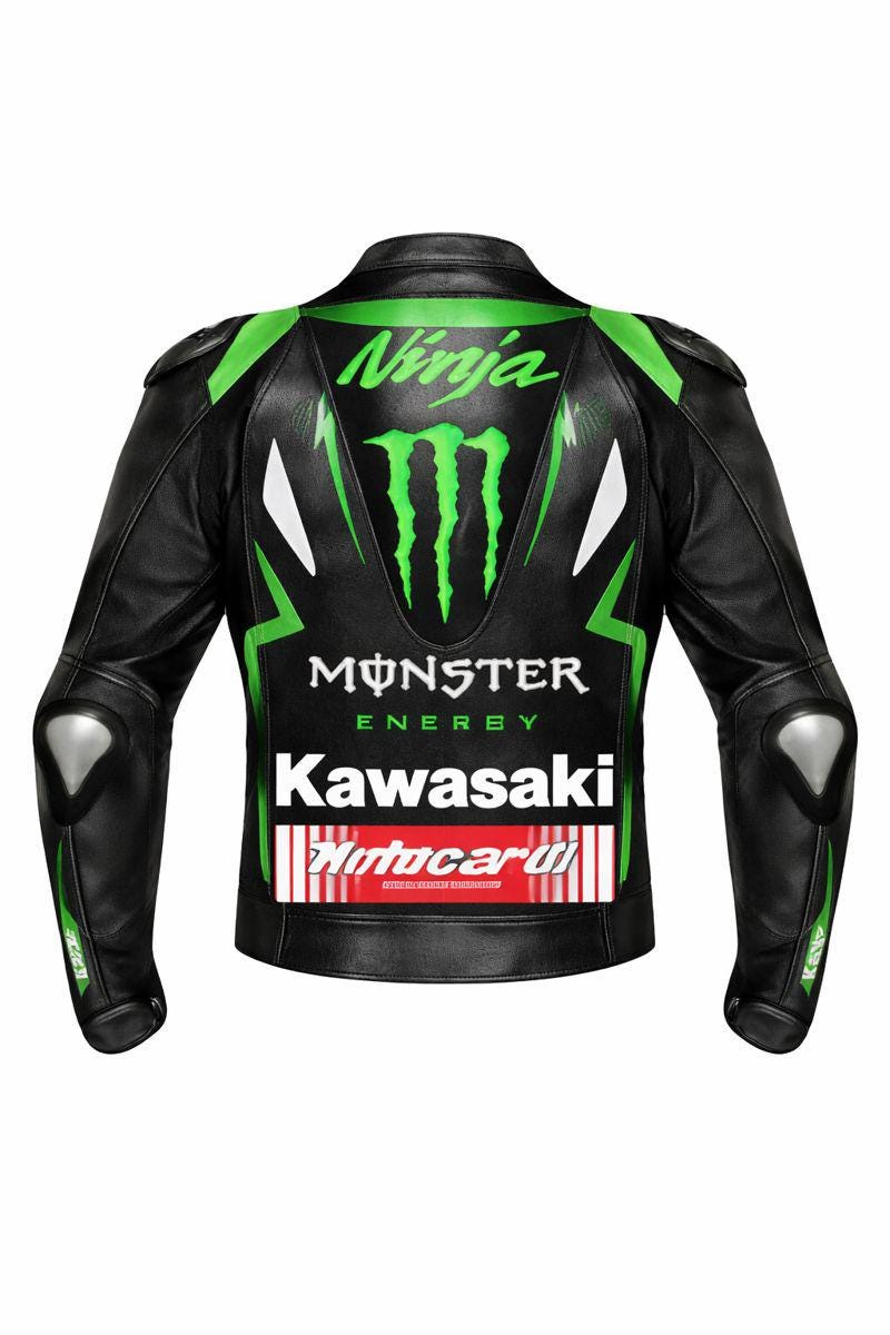 Crafted from premium genuine leather, the jacket features a Monster Energy–inspired black and green racing design, reinforced stitching, and a sporty ergonomic fit. Protective padding at key impact zones enhances rider safety while maintaining flexibility and comfort.